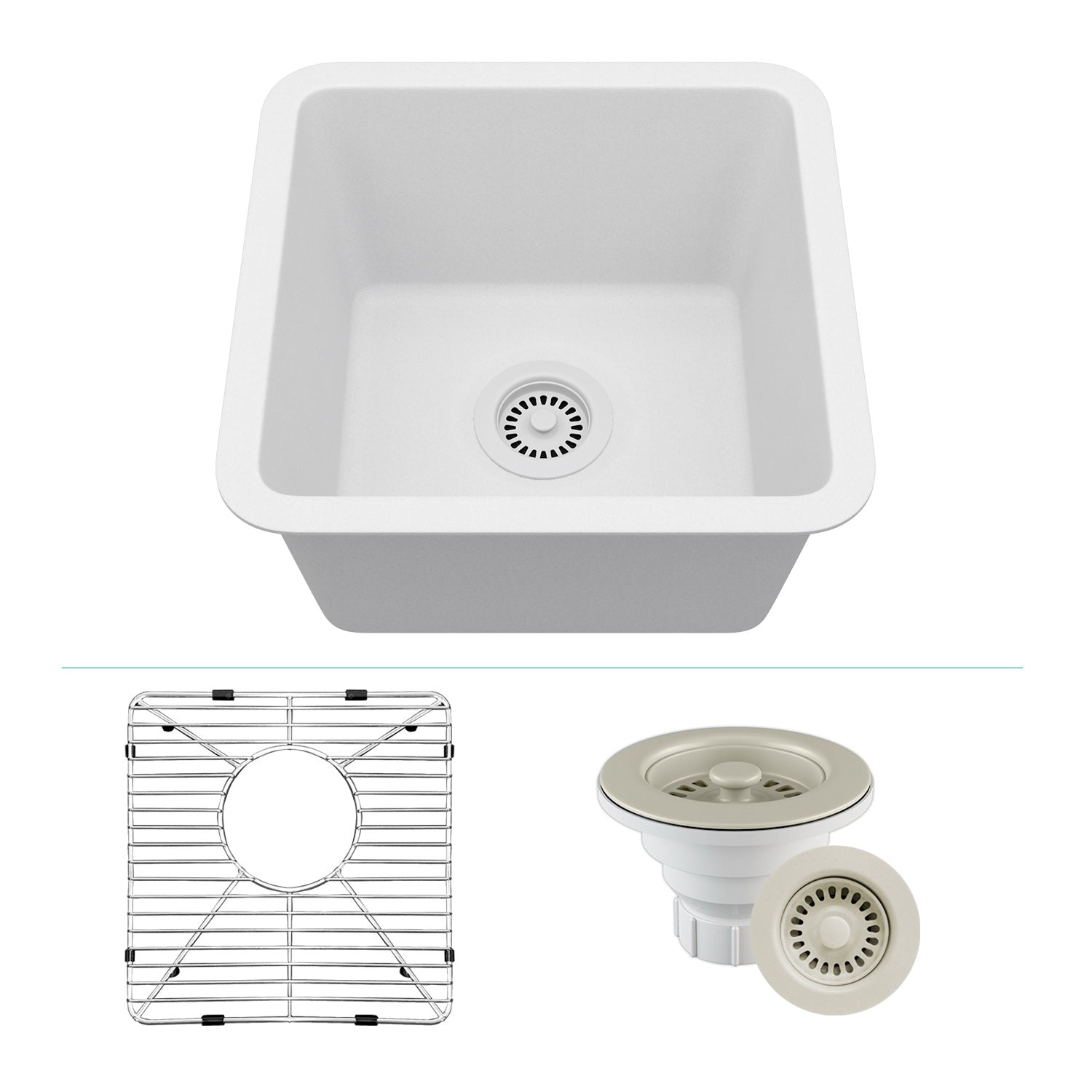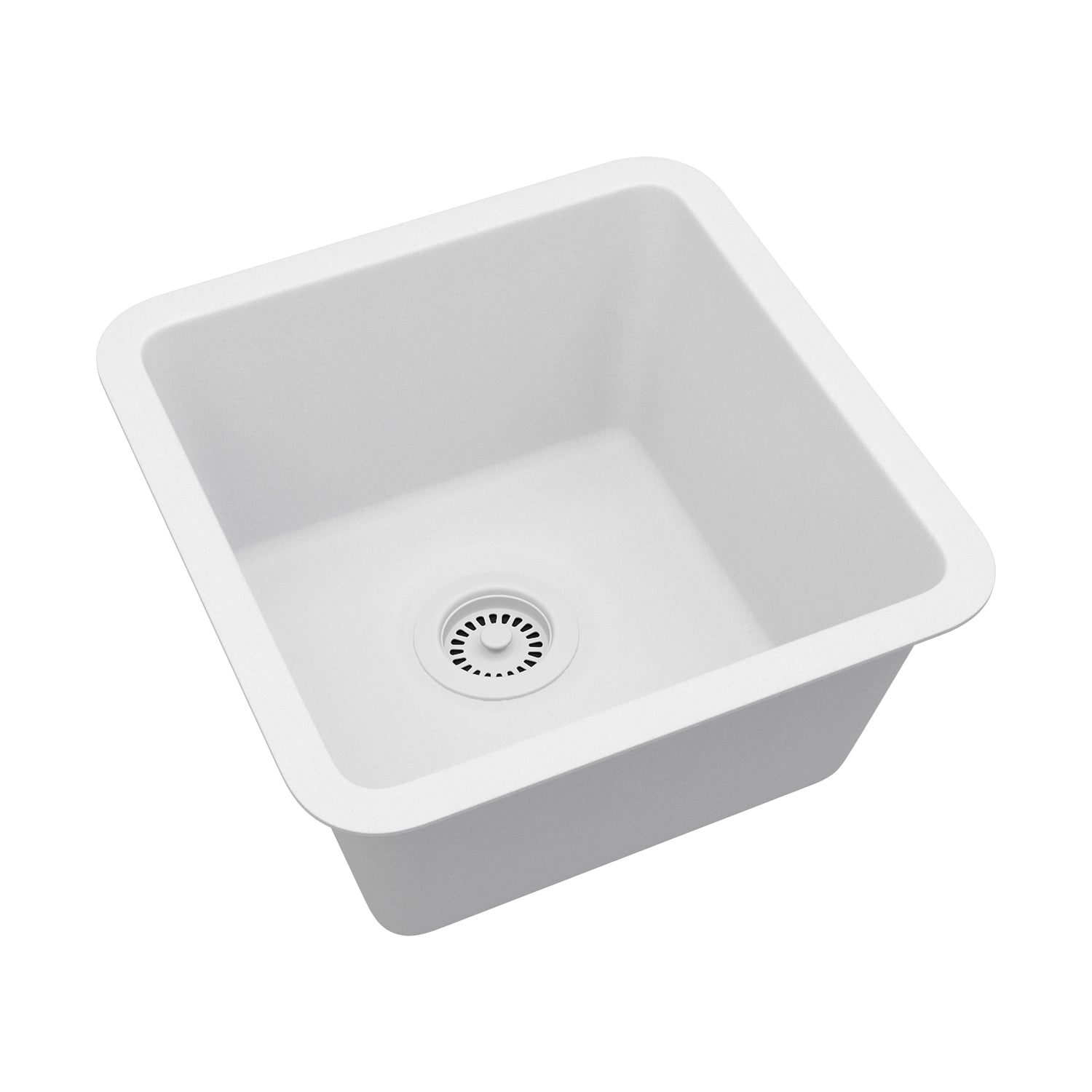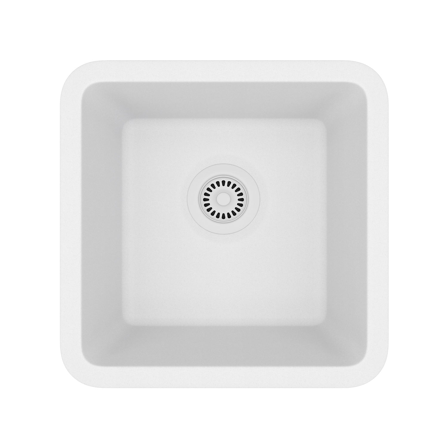 15-Inch Platinum Quartz Composite Drop-in Undermount Single Bowl Galaxy White Kitchen/Bar Sink includes Accessories LP-1515-W