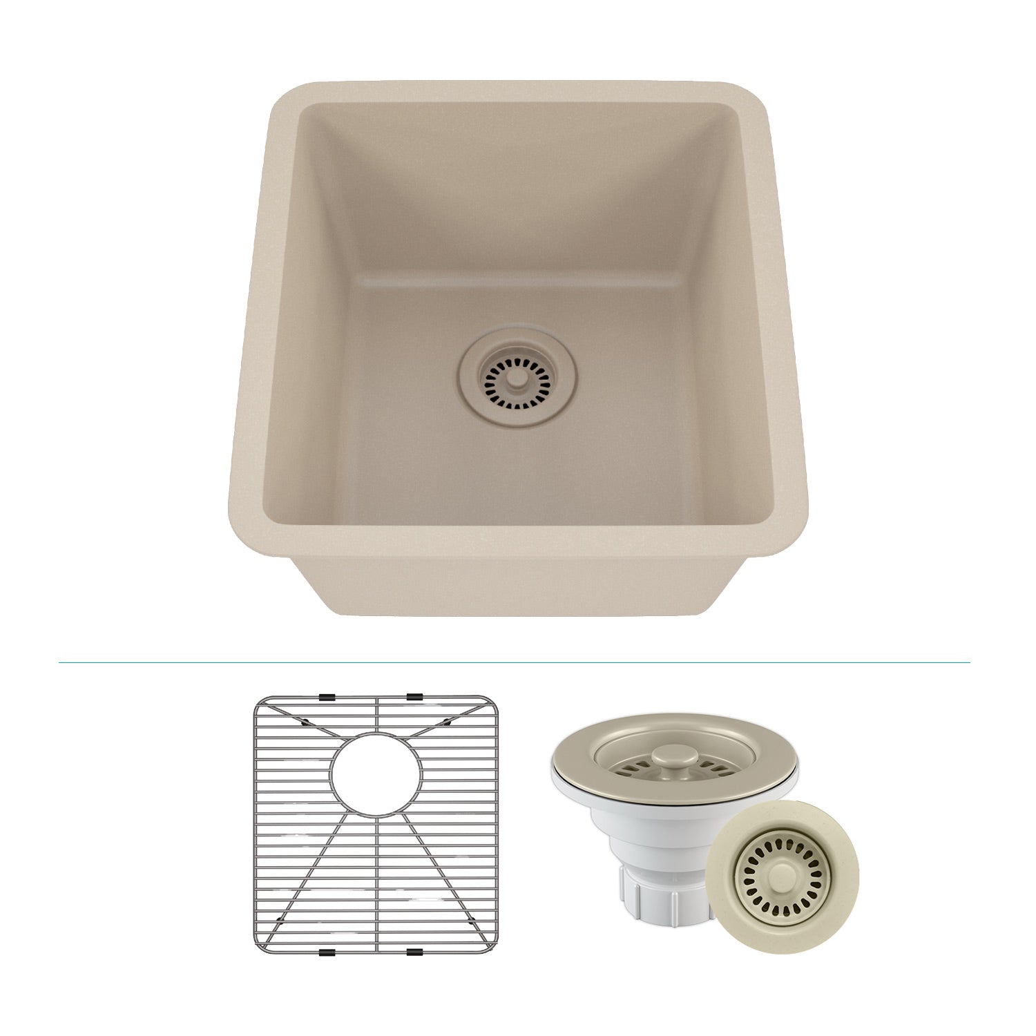 16-Inch Platinum Quartz Composite Drop-in Undermount Single Bowl Galaxy Beige Kitchen Sink includes Accessories LP-1618-B