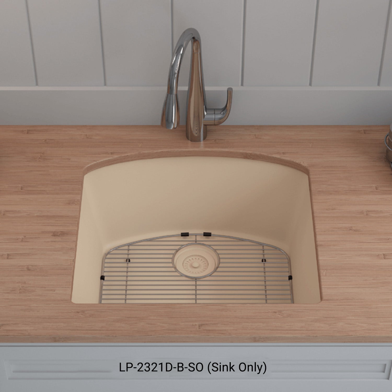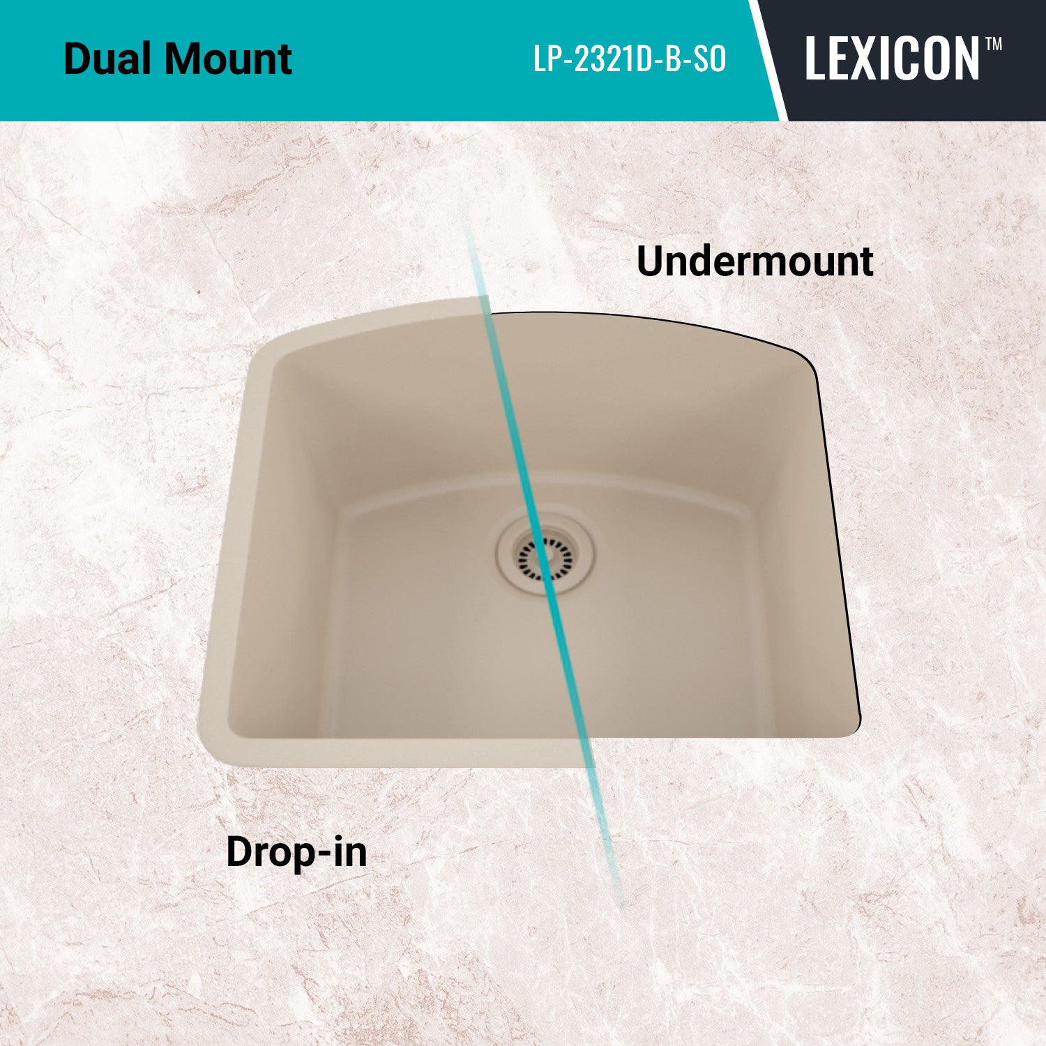 23-Inch Lexicon Platinum Quartz Composite Drop-in Undermount D-Shaped Single Bowl Galaxy Beige Kitchen Sink LP-2321D-B-SO