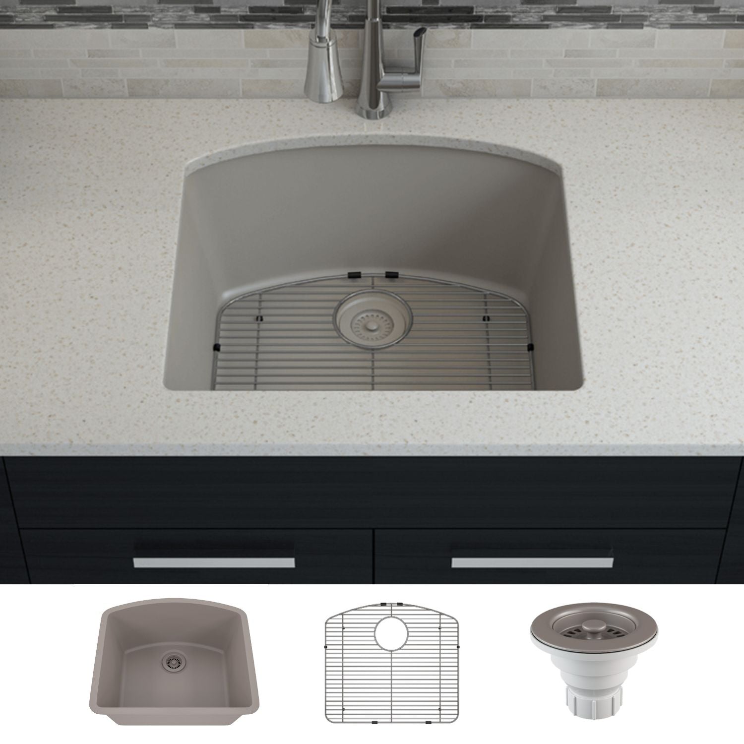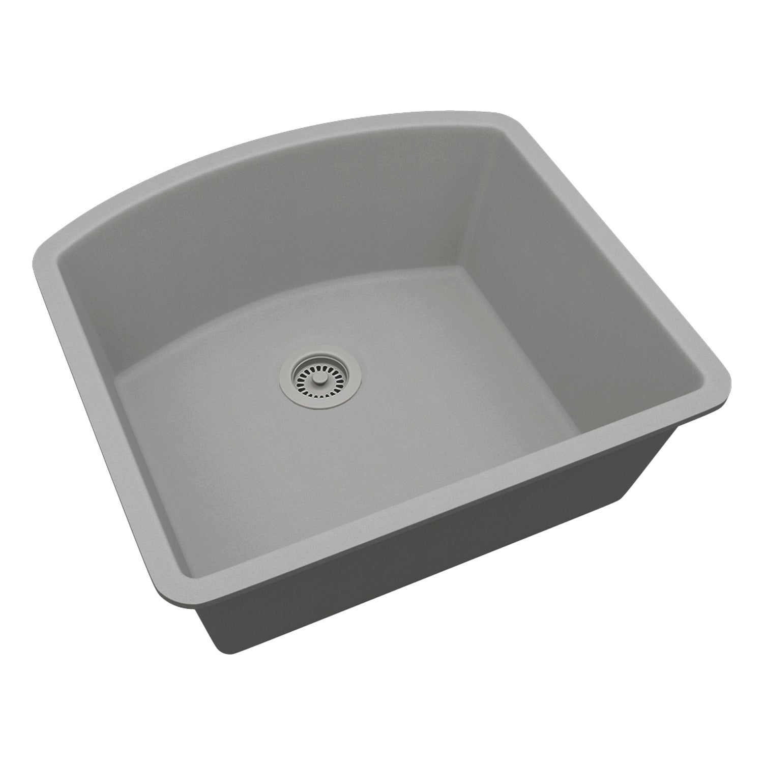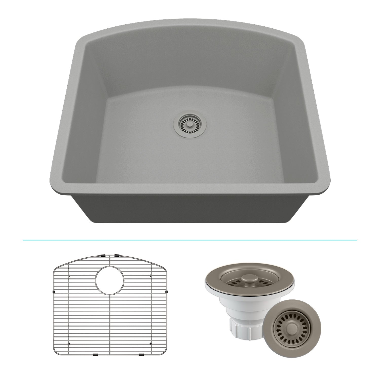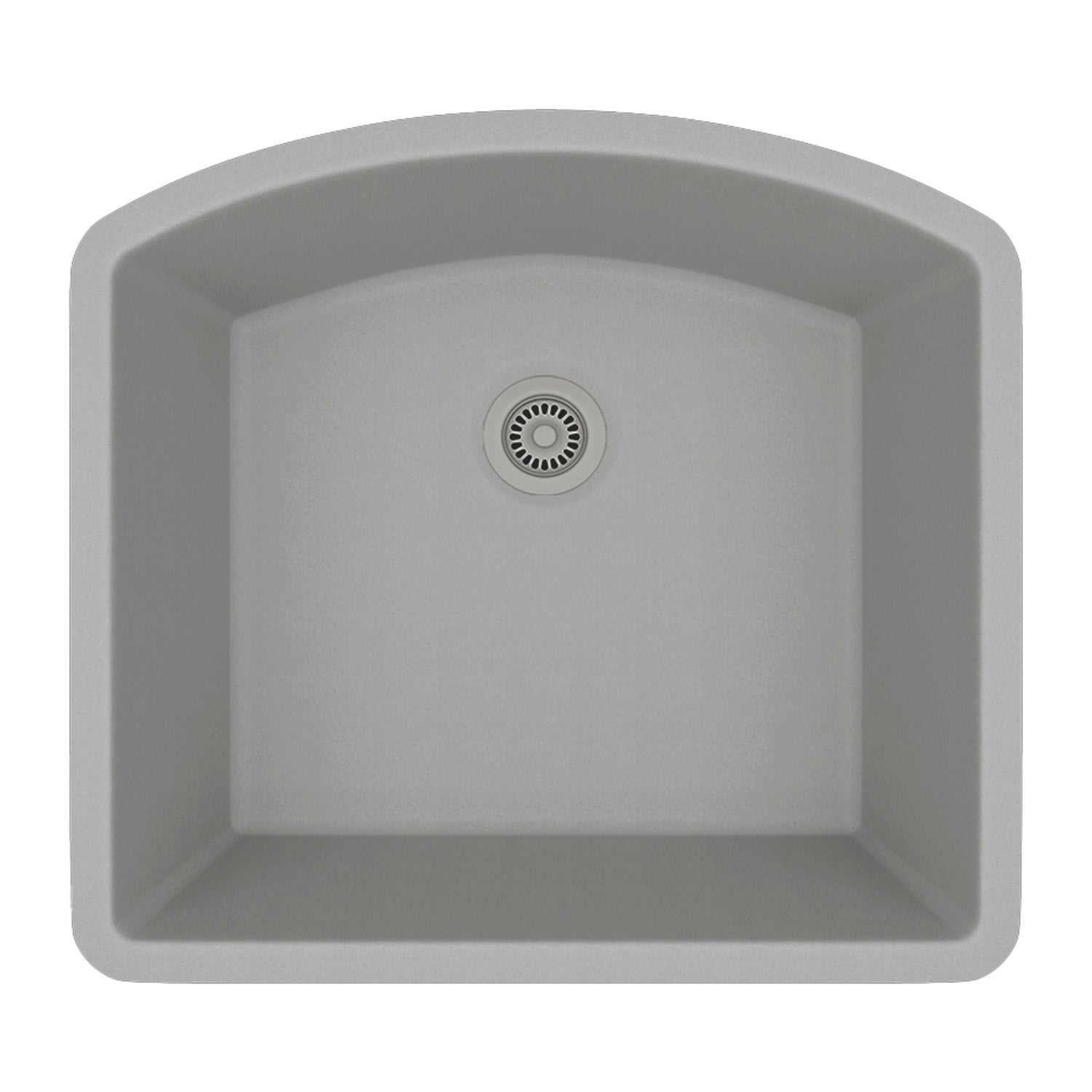 23-Inch Platinum Quartz Composite Drop-in Undermount Galaxy Concrete Kitchen Sink D-Shaped Single Bowl includes Accessories LP-2321D-C