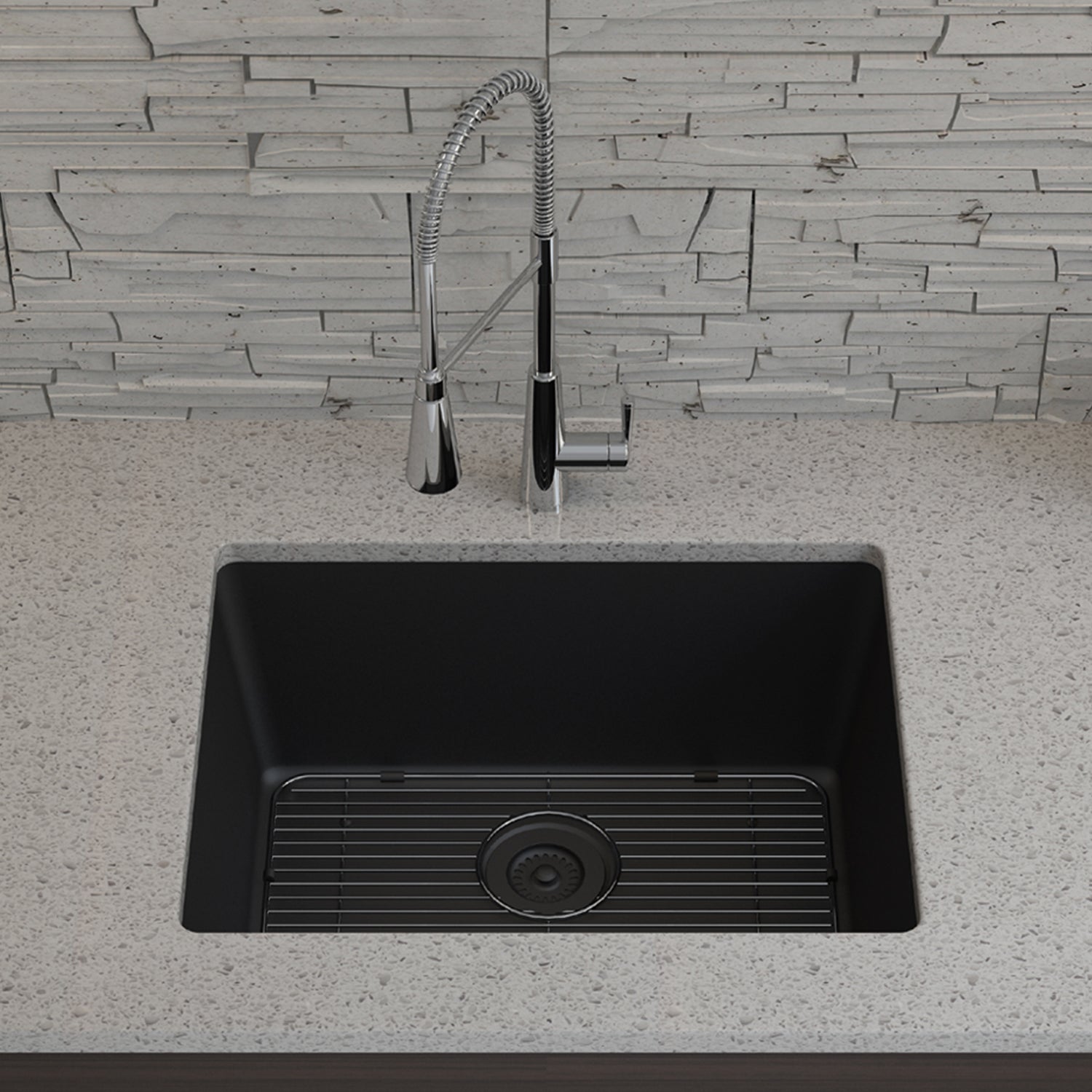 23-Inch Platinum Quartz Composite Drop-in Undermount Single Bowl Galaxy Black Kitchen Sink includes Accessories LP-2318-K