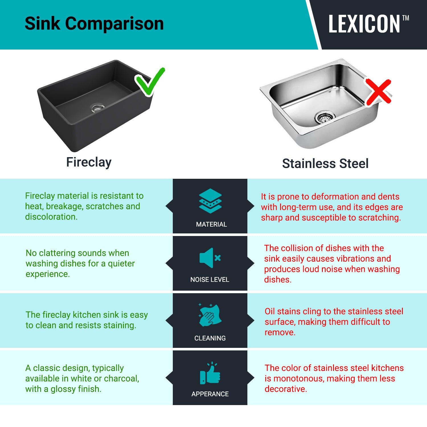 - More durable than ceramic porcelain sinks