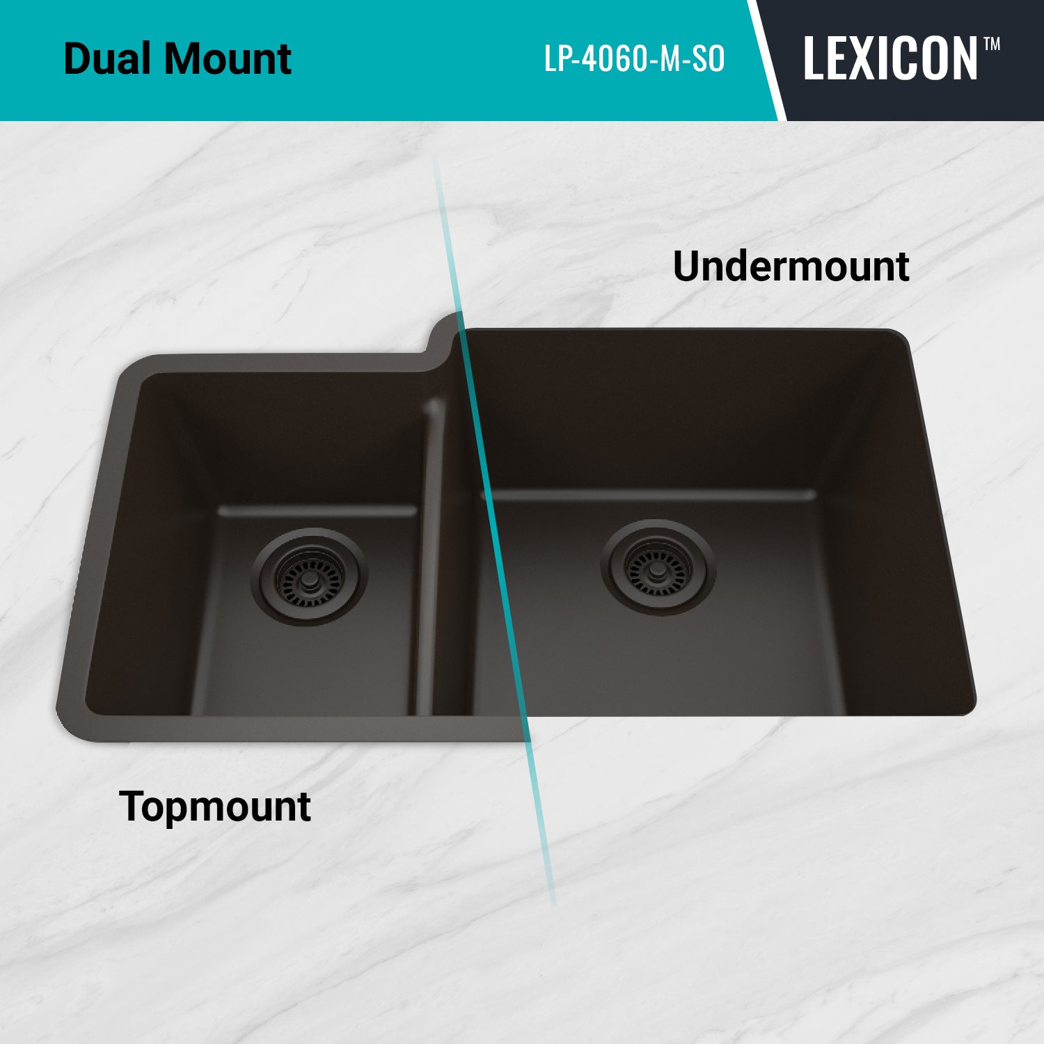 32-Inch Lexicon Platinum Quartz Composite Drop-in Undermount 40/60 Double Bowl Galaxy Mocha Kitchen Sink LP-4060-M-SO