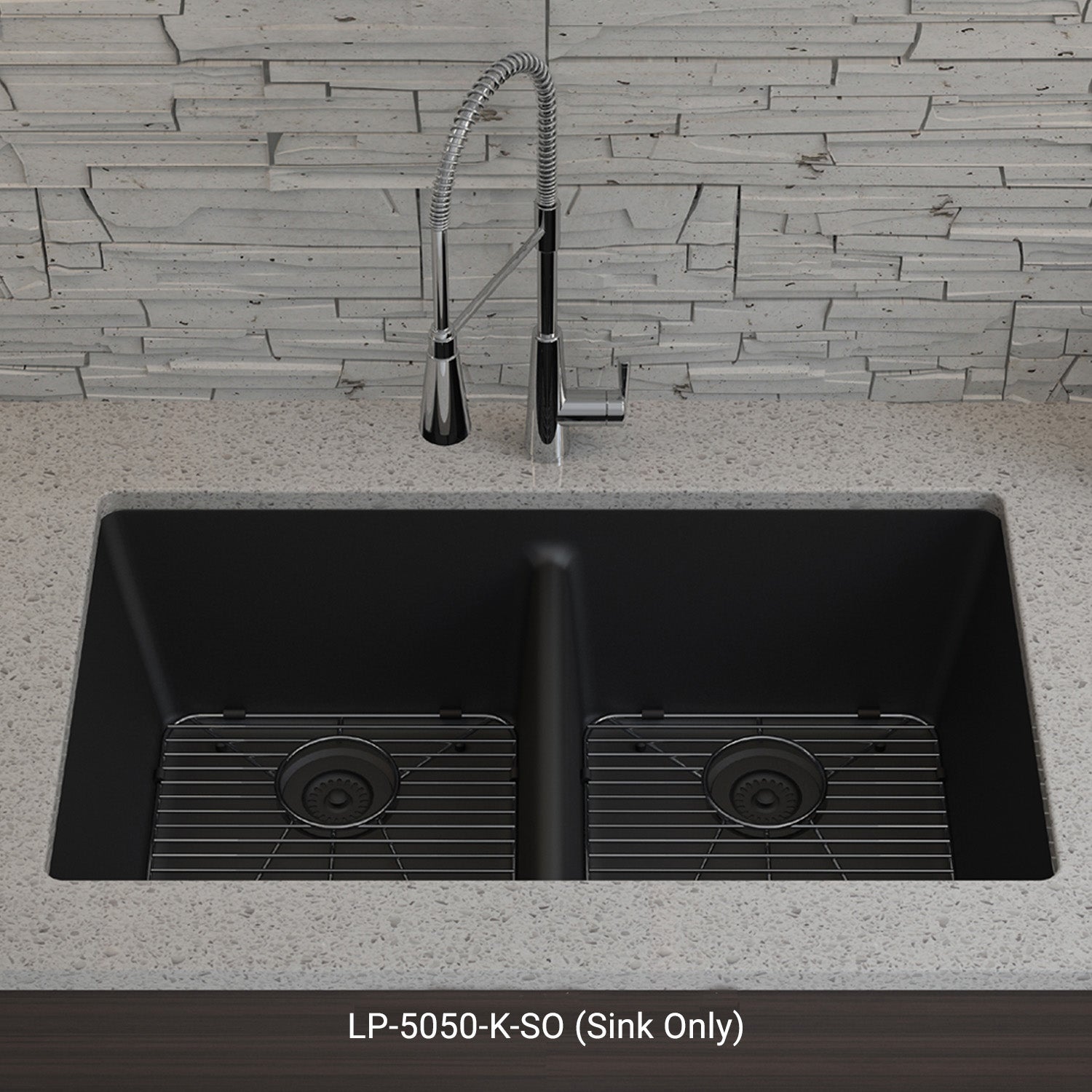 Elevate your kitchen with the unmatched quality of the Lexicon Platinum Quartz Equal Double Bowl Kitchen Sink. The LP-5050 Black epitomizes contemporary design and unparalleled convenience. Experience the luxury of a deep 9 inch double bowl with rear positioned drain for optimal under-counter space utilization, and flawlessly smooth corner radiuses for effortless maintenance and care.