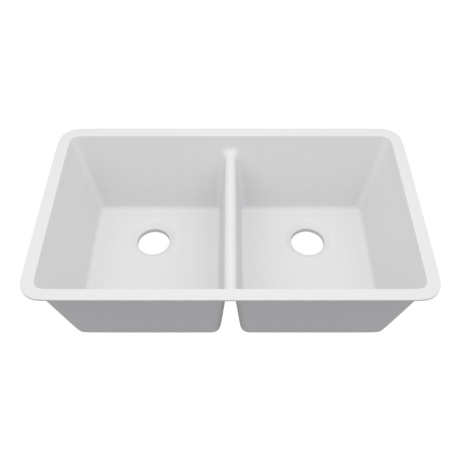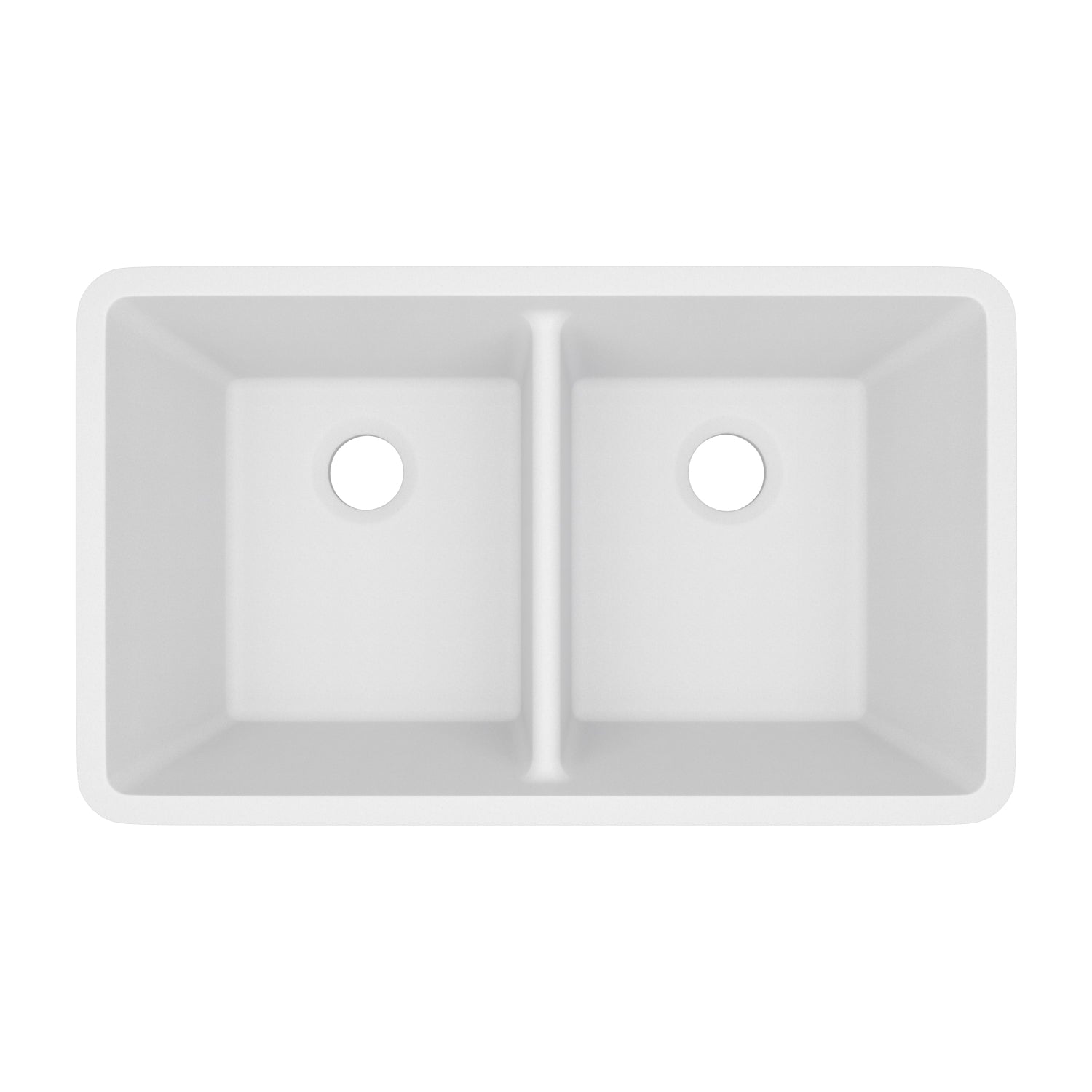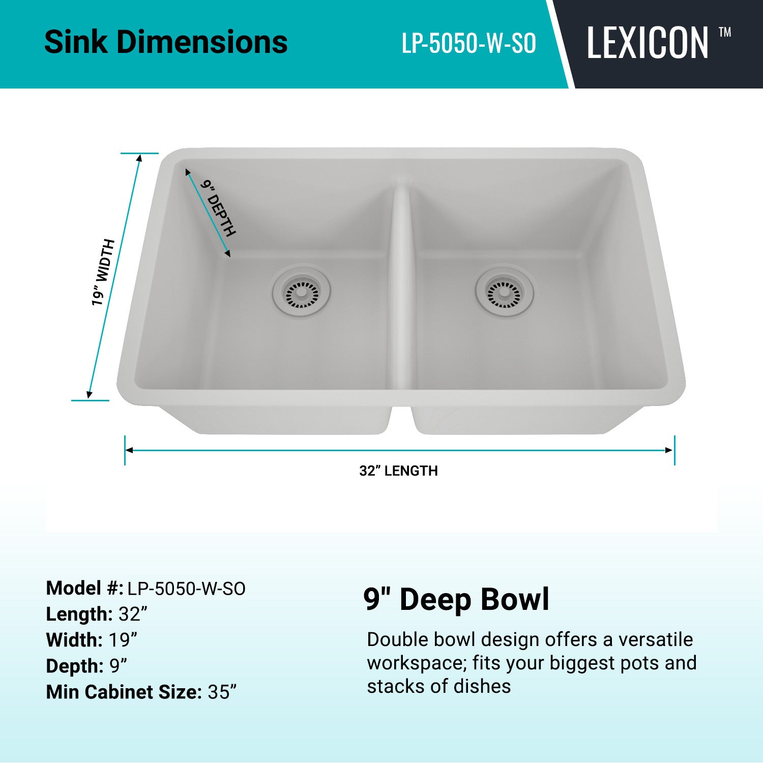 32-Inch Lexicon Platinum Quartz Composite Drop-in Undermount 50/50 Equal Double Bowl Galaxy White Kitchen Sink LP-5050-W-SO