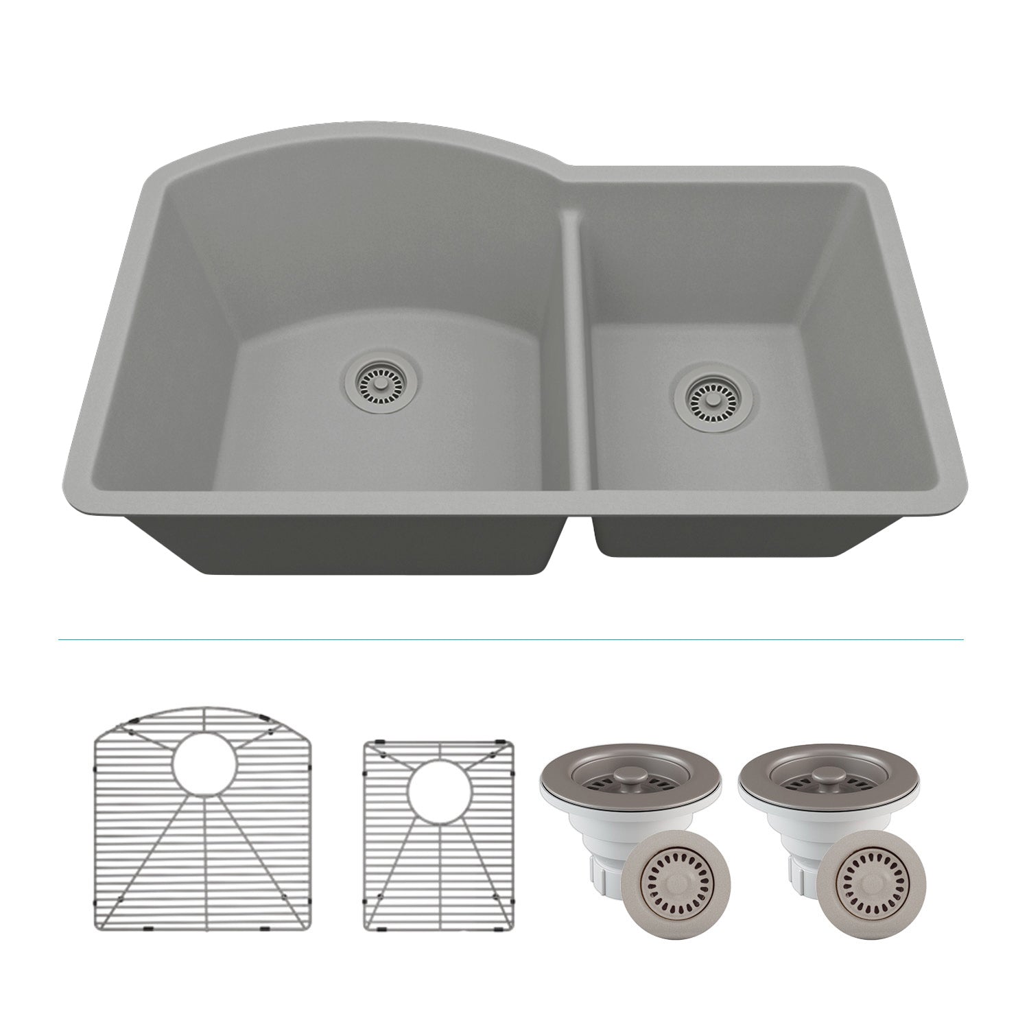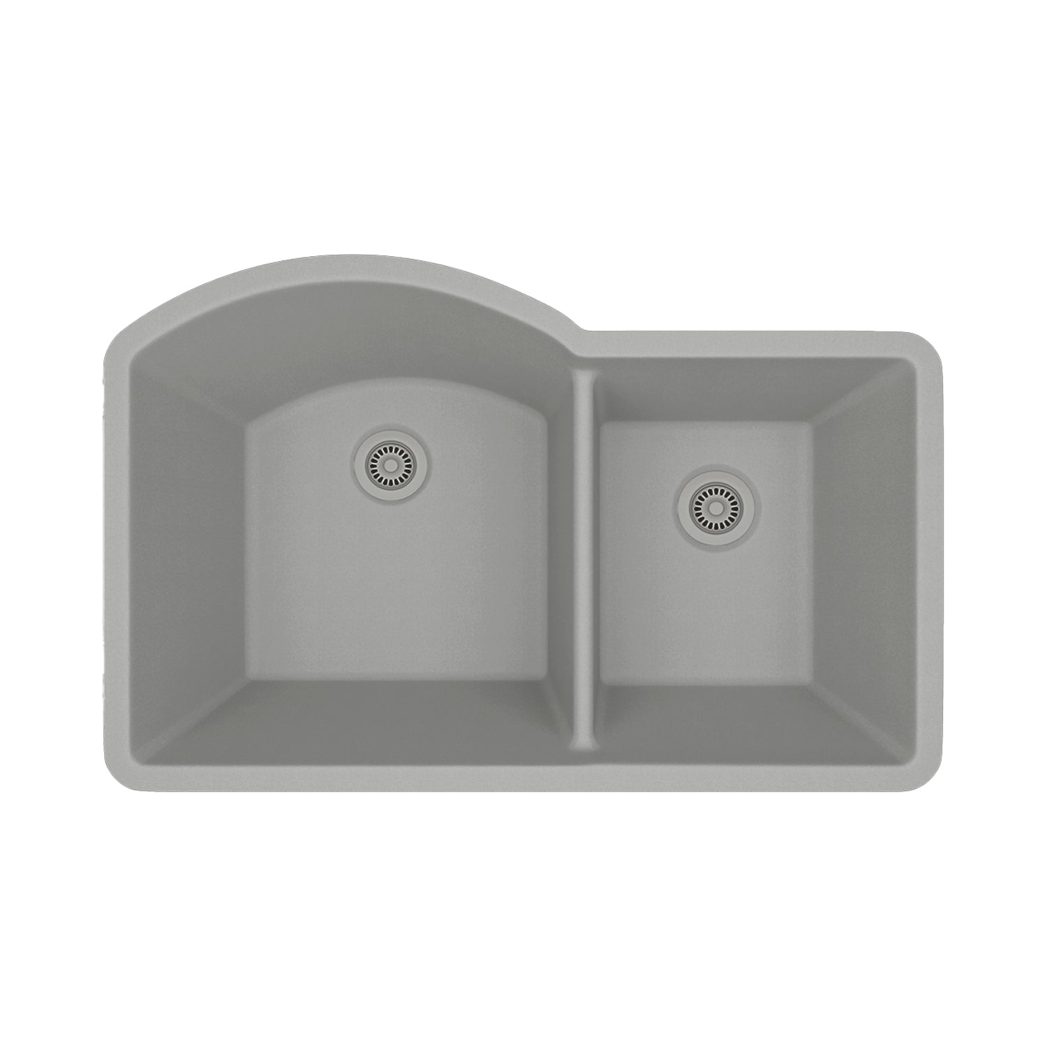 32-Inch Platinum Quartz Composite Drop-in Undermount 70/30 Double Bowl Galaxy Concrete Kitchen Sink includes Accessories LP-7030-C