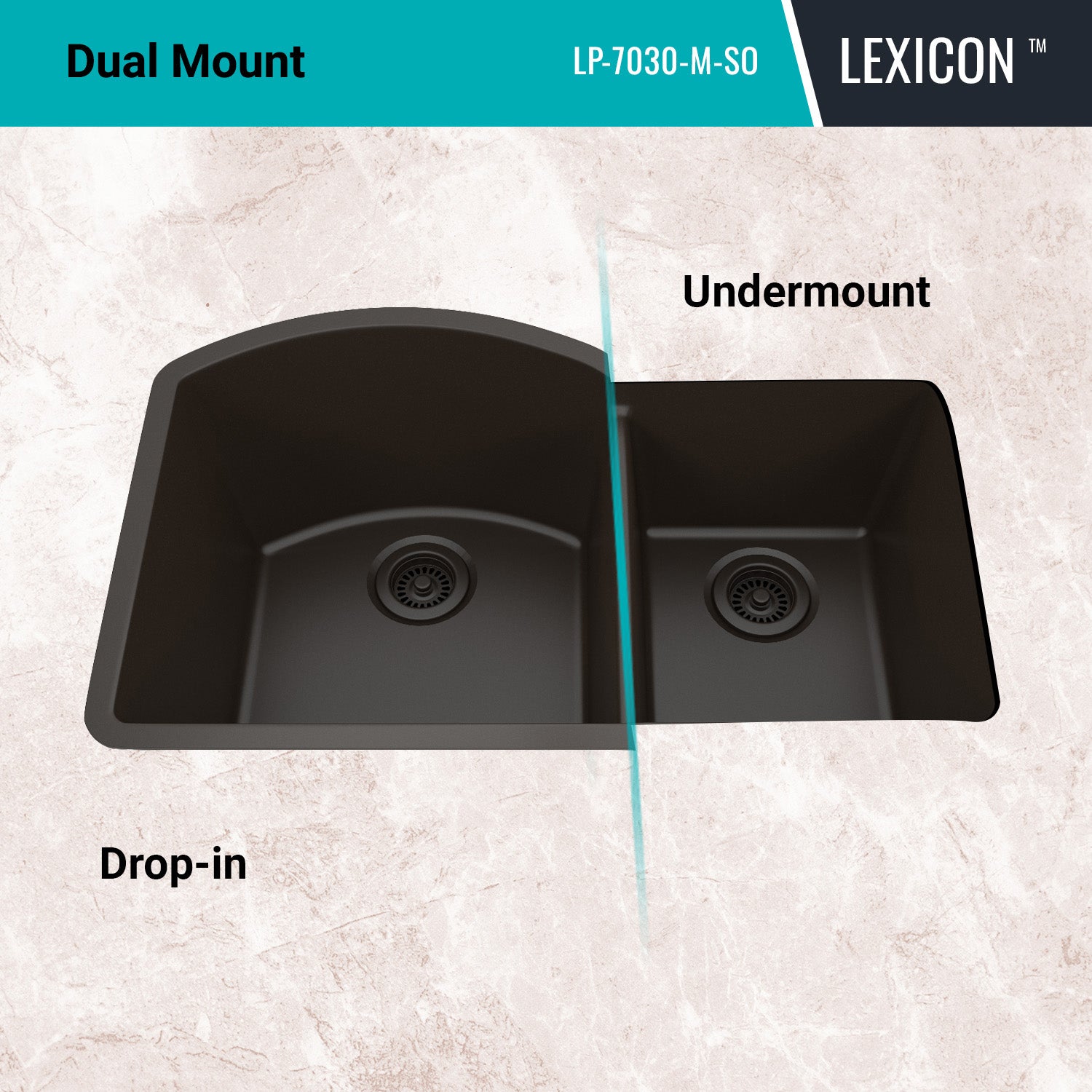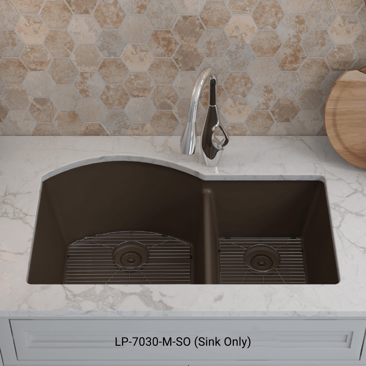 32-Inch Lexicon Platinum Quartz Composite Drop-in Undermount 70/30 Double Bowl Galaxy Mocha Kitchen Sink LP-7030-M-SO