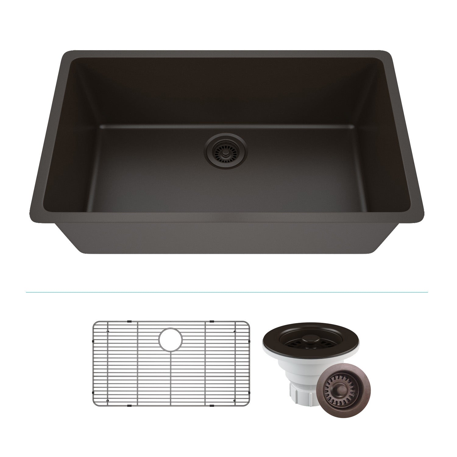 32-Inch Platinum Quartz Composite Drop-in Undermount Single Bowl Galaxy Mocha Kitchen Sink includes Accessories LP-1000-M