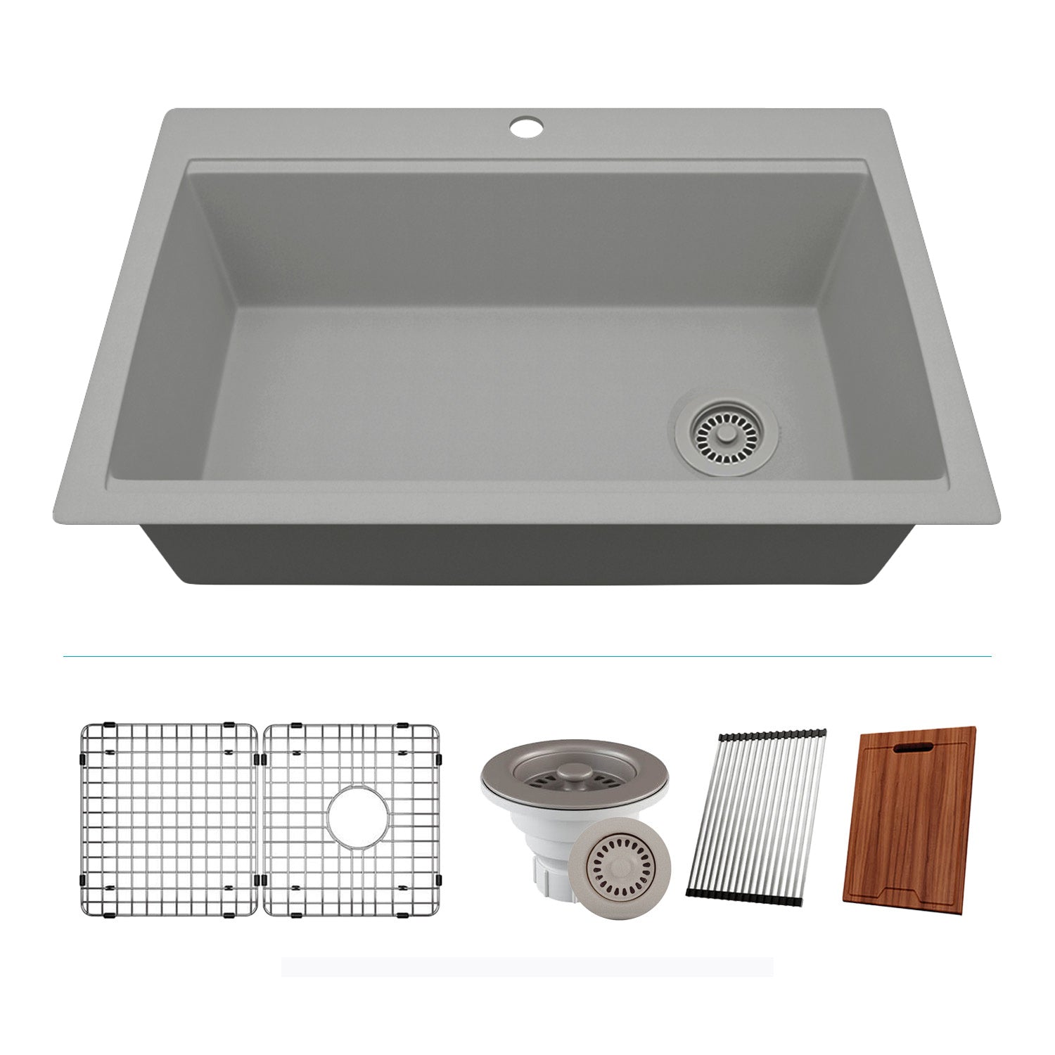 33-Inch Platinum Quartz Composite Drop-in Undermount Single Bowl Workstation Galaxy Concrete Kitchen Sink includes Accessories LP-750TM-C